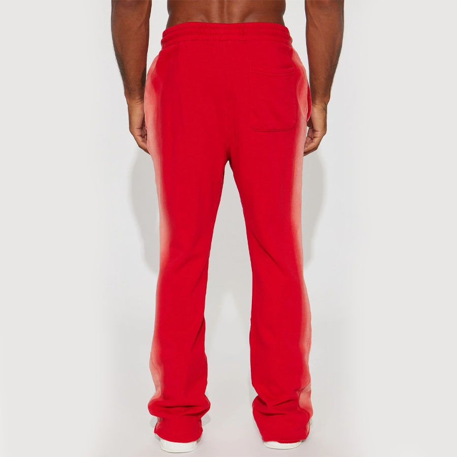 กางเกงวอร์มทรงบานผ้าฝ้ายย้อมสีแดงแบบซันเฟดสำหรับผู้ชาย ระบายอากาศได้ดี ทรงขาเดฟ น้ำหนักเบา เป็นมิตรกับสิ่งแวดล้อม สไตล์สตรีทแวร์