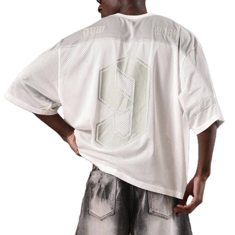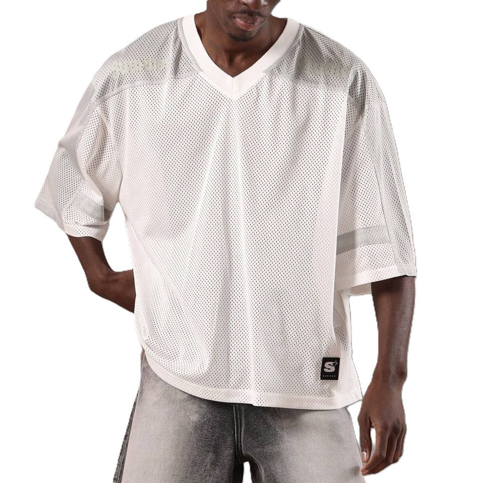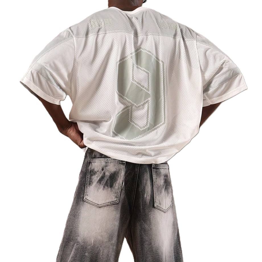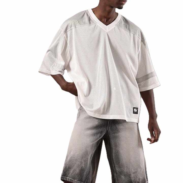 เสื้อเจอร์ซีย์อเมริกันฟุตบอลทรงบ็อกซี่โอเวอร์ไซส์สำหรับผู้ชาย คอวี ไหล่ตก ทรงหลวม สตรีทแวร์ เสื้อกีฬา รับผลิตตามแบบ OEM