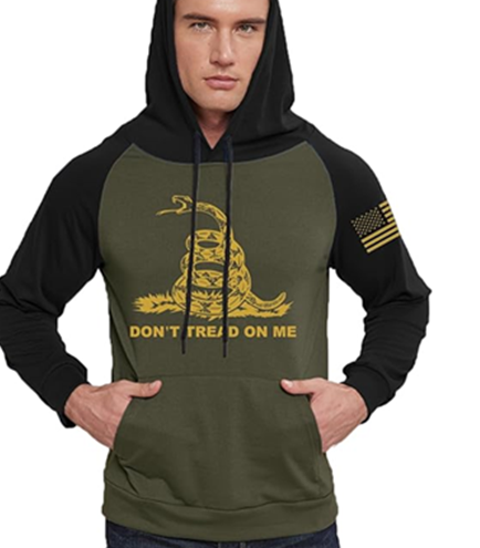 เสื้อฮู้ดผู้ชายลายธงชาติอเมริกา ผลิตจากโพลีเอสเตอร์ แขนยาวแบบแร็กแลน มีกระเป๋า