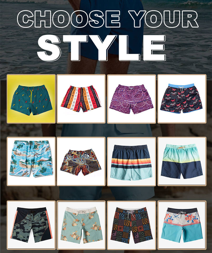 กางเกงว่ายน้ำชายพิมพ์ลายชุดว่ายน้ำแห้งเร็วชุดใส่เดินชายหาดมีกระเป๋าซับในกางเกงขาสั้นชายหาดน้ำหนักเบาจัดส่งตามสั่ง