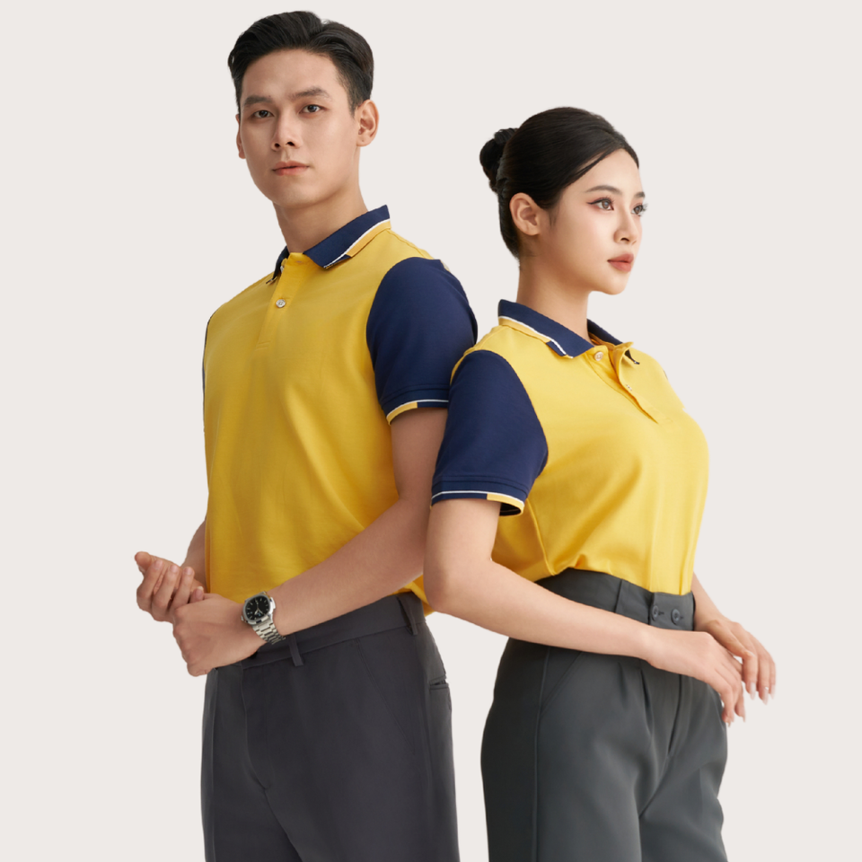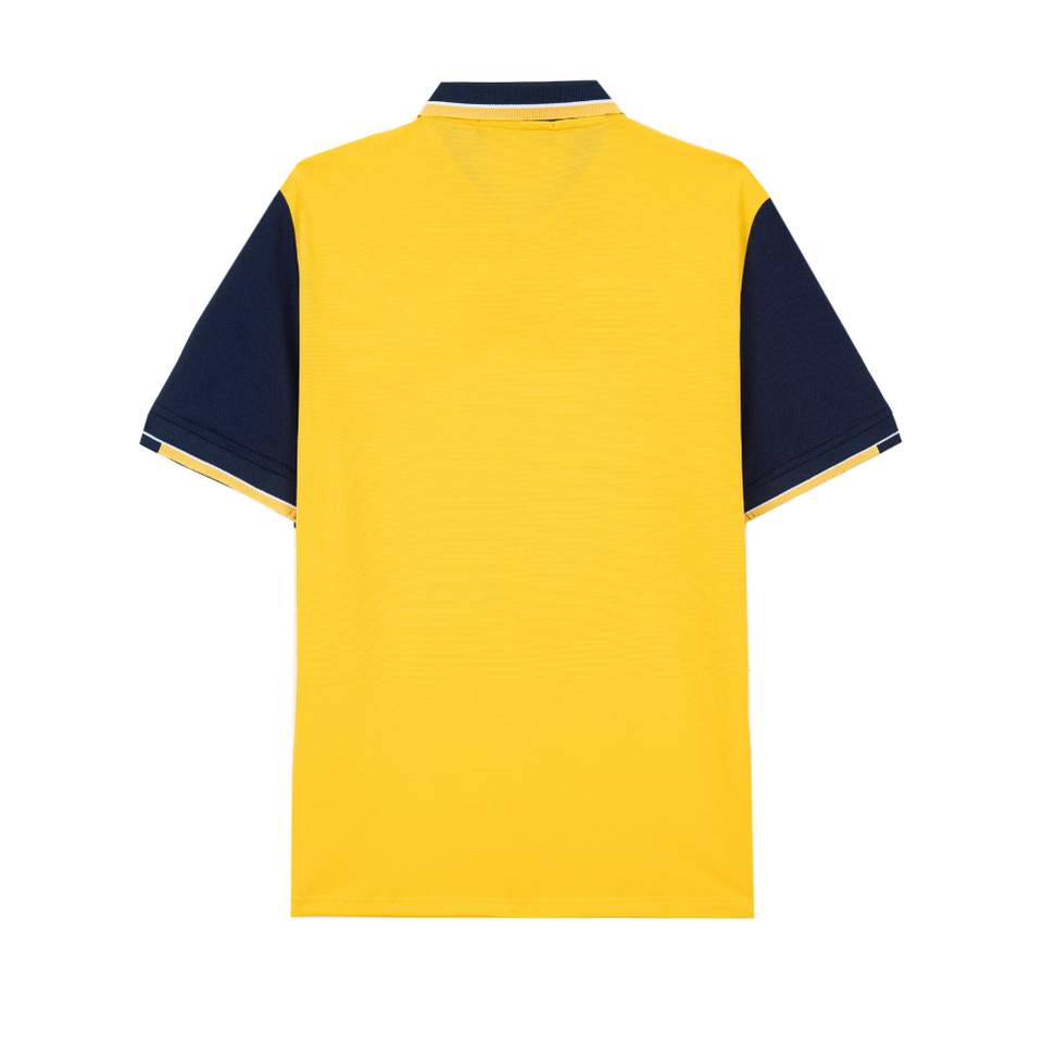 เสื้อโปโลแขนสมมาตรของผู้ชายผ้าฝ้ายสีเหลืองพรีเมี่ยม