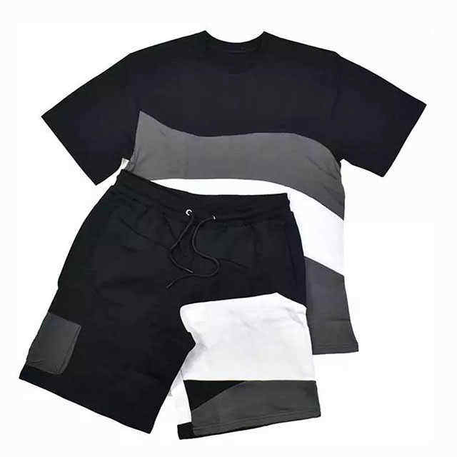 เซตเสื้อยืดคอกลมและกางเกงขาสั้นผ้าถักโอเวอร์ไซส์สำหรับผู้ชายชุดวอร์มไหล่ตกสำหรับฤดูร้อน