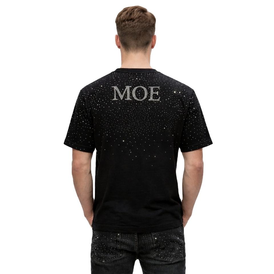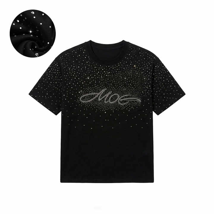 เสื้อยืดโอเวอร์ไซส์ผู้ชายผ้าฝ้ายประดับคริสตัลแบบ Hotfix สไตล์สตรีทแวร์ลายกราฟิกวิบวับ ไหล่ตก รับผลิตเสื้อผู้ชายแบบ OEM พร้อมสกรีนโลโก้ตามสั่ง