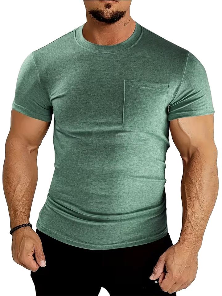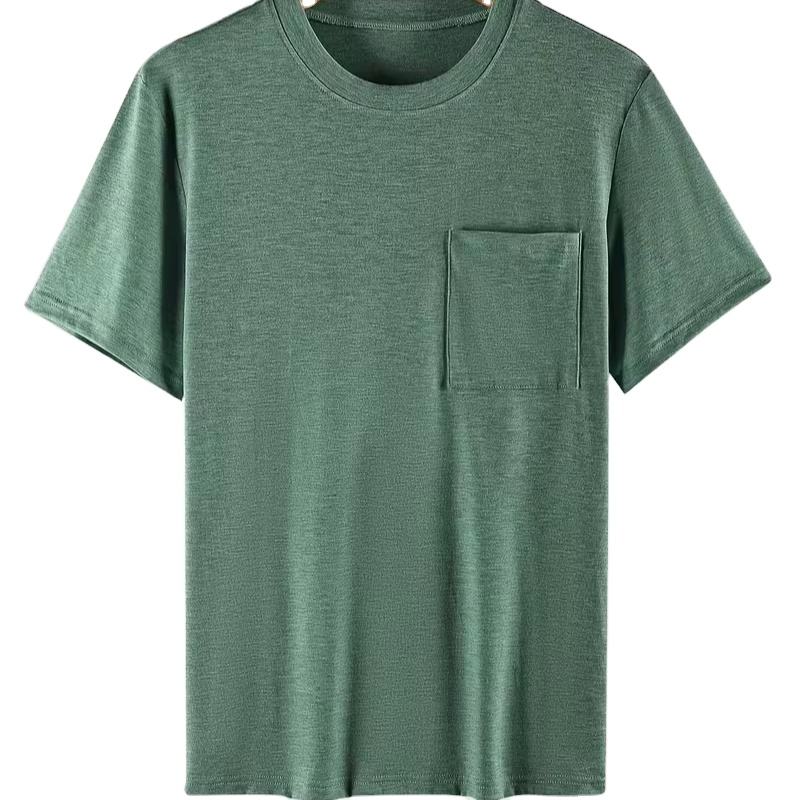 เสื้อยืดคอกลมแขนสั้นผู้ชายขายดีสำหรับฤดูร้อน มีกระเป๋า ผ้าคอตตอนหนา 180 กรัม สีพื้น ทรงหลวม สไตล์บังคลาเทศ