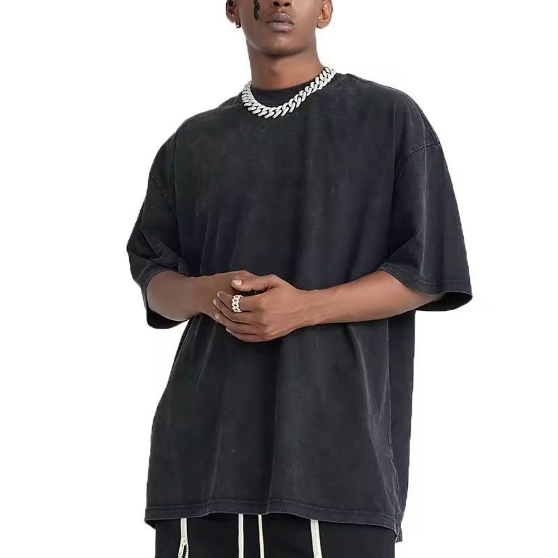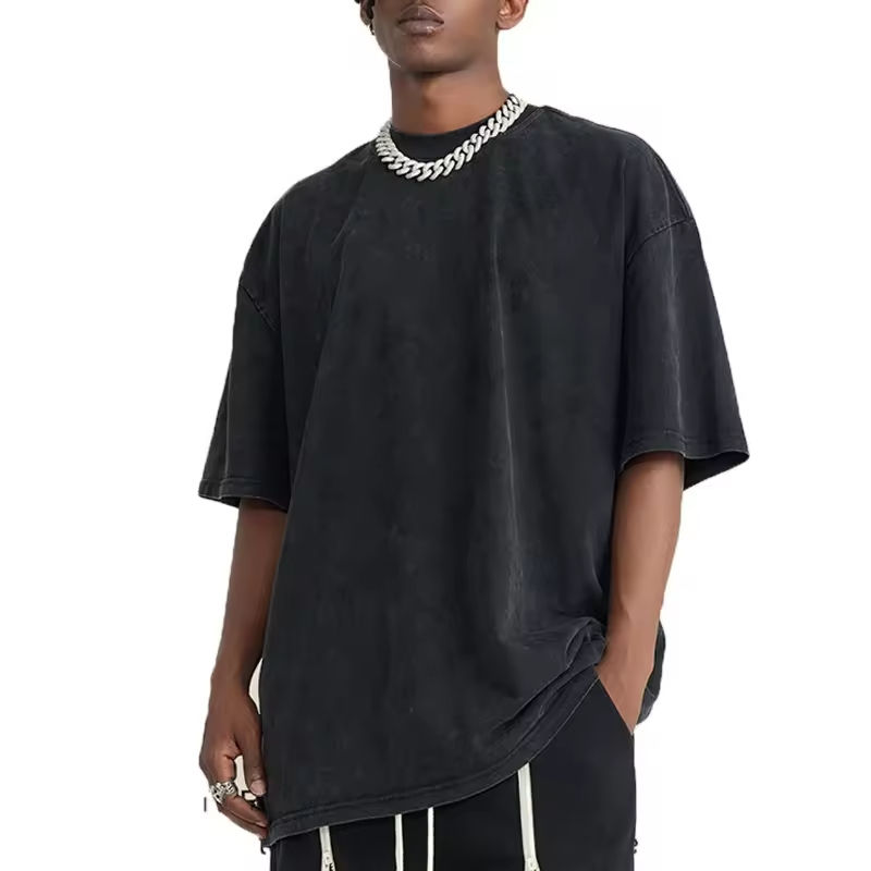 เสื้อยืดผู้ชายสไตล์วินเทจ ซักแบบตามสั่ง ออกแบบโลโก้เองได้ หรูหรา ทรงโอเวอร์ไซส์ ไหล่ตก คอกลม สตรีทแวร์ แบบเรียบ