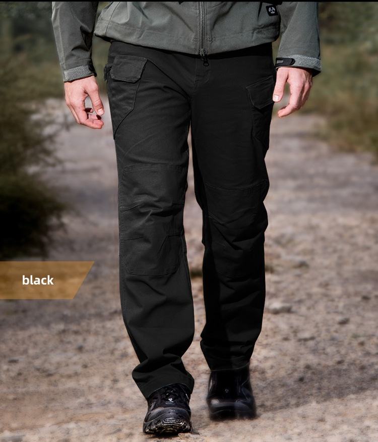 กางเกงคาร์โก้ผู้ชายแบบยุทธวิธี มีกระเป๋าหลายช่อง เหมาะสำหรับทำงานกลางแจ้ง เดินป่า สีดำ กางเกงคาร์โก้ฤดูหนาว กางเกงขายาวผู้ชาย