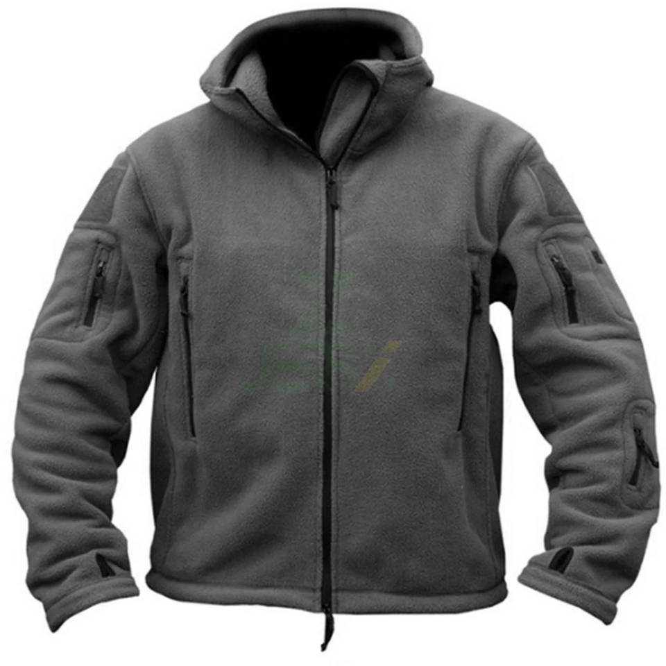 เสื้อแจ็คเก็ตกีฬายุทธวิธีของผู้ชายเสื้อโค้ทมีฮู้ดขนแกะสีทึบมีกระเป๋าซิปแบบลำลองหลายกระเป๋าดีไซน์กลางแจ้งสำหรับฤดูใบไม้ร่วงฤดูหนาวขนาดพิเศษ