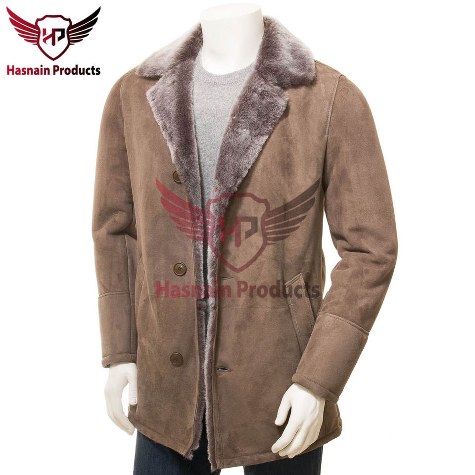 เสื้อโค้ทเชียร์ลิงแกะสีน้ําตาลของผู้ชาย ชุดนอกฤดูหนาวที่ปรับแต่งได้พร้อมซับในเชียร์ลิงที่หรูหราเพื่อความอบอุ่นที่ไม่ซ้ํากัน