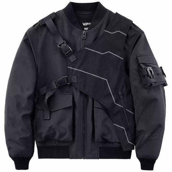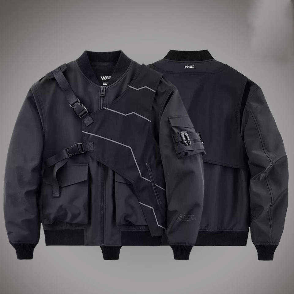 เสื้อแจ็คเก็ตบอมเบอร์เทคแวร์ผู้ชาย สไตล์ไซเบอร์พังก์ สตรีทแวร์ ฟังก์ชันหลากหลาย มีกระเป๋าหลายช่อง กันลม สไตล์ฮาราจูกุ ฮิปฮอป เสื้อคลุมคาร์โก้