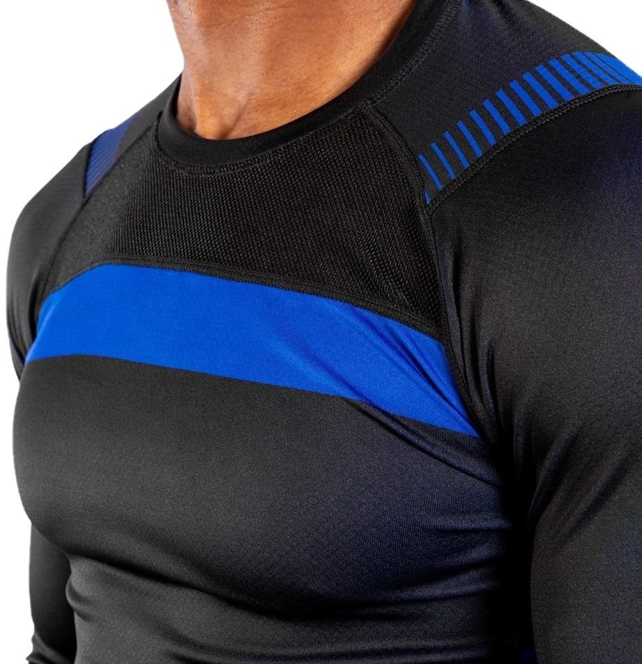 เสื้อชั้นในกันหนาวแบบรัดรูปสำหรับผู้ชาย แขนยาว สีดำ-น้ำเงิน ป้องกันการกระแทก สำหรับกีฬา MMA