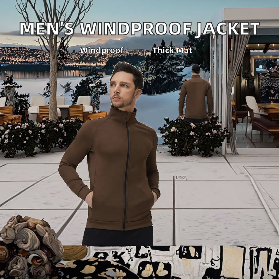 แจ็กเก็ตมีฮู้ดสำหรับผู้ชายแบบรูดซิปด้านหน้าแบบหนาสีทึบ6สีทำจากผ้าฝ้ายโพลีเอสเตอร์