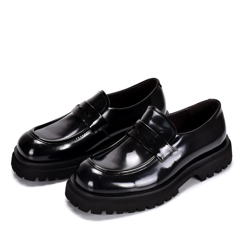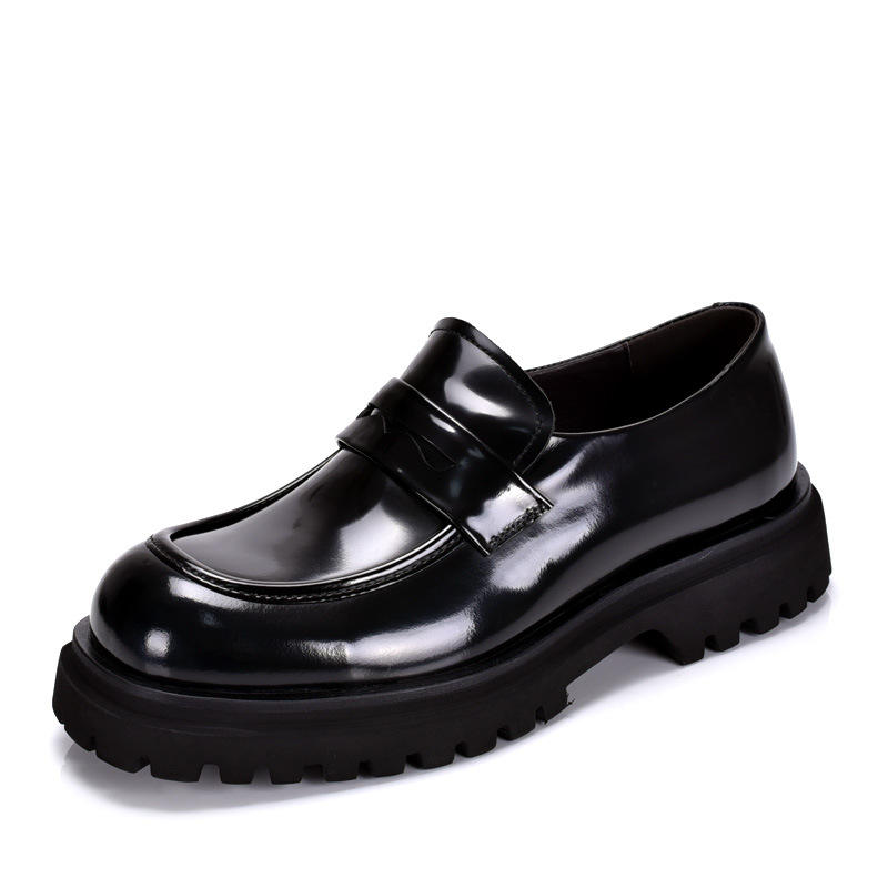 รองเท้าโลฟเฟอร์หัวเหลี่ยมพื้นหนาสำหรับผู้ชาย สไตล์เกาหลี เหมาะสำหรับใส่ทำงาน ผูกเชือก หนังวัวแท้ แต่งลาย หนังเงา ใส่สบาย ระบายอากาศได้ดี