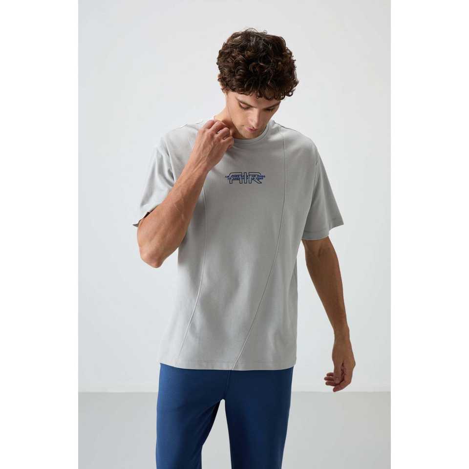 เสื้อยืดโอเวอร์ไซส์ผู้ชาย เนื้อผ้าหนา 100% ผ้าเจอร์ซีย์คอตตอนสโตน พิมพ์ลาย-88372