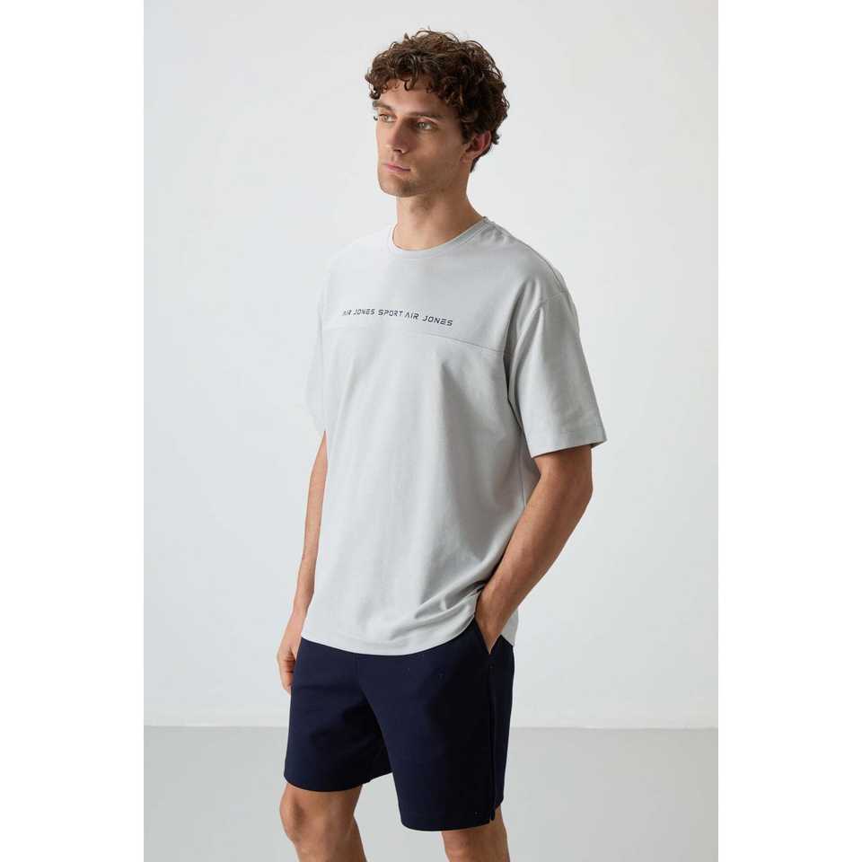 เสื้อยืดโอเวอร์ไซส์ผู้ชายเนื้อผ้าหนาพิเศษ 100% ผ้าเจอร์ซีย์คอตตอนสโตน พิมพ์ลายดีไซน์-88371