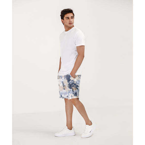 กางเกงขาสั้นผ้าฝ้าย 100% ลายมัดย้อมสำหรับผู้ชาย-ฤดูร้อน