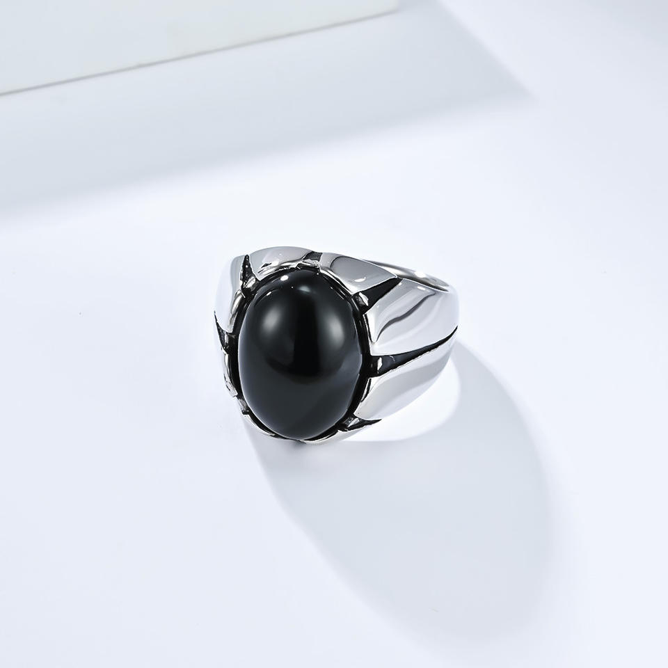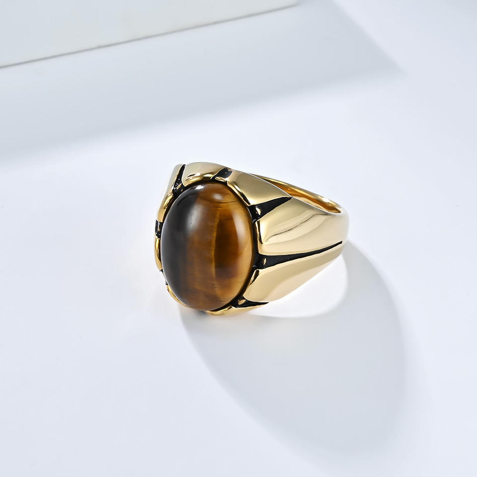แหวนไทเกอร์อายสำหรับผู้ชาย รูปไข่ พลอยสีดำ สแตนเลส ดีไซน์เรขาคณิต แหวนนิ้วโป้ง ของขวัญ เครื่องประดับ