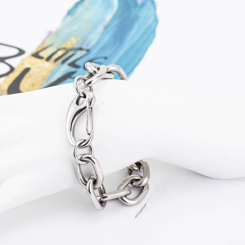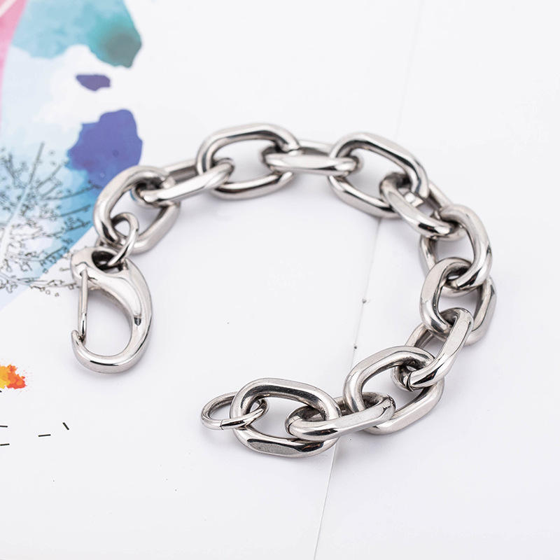 สร้อยข้อมือโซ่หนาเหล็กไทเทเนียมสำหรับผู้ชาย ดีไซน์วงแหวนทรงเรขาคณิต ขนาด 19 ซม. 21 ซม. เครื่องประดับแฟชั่น
