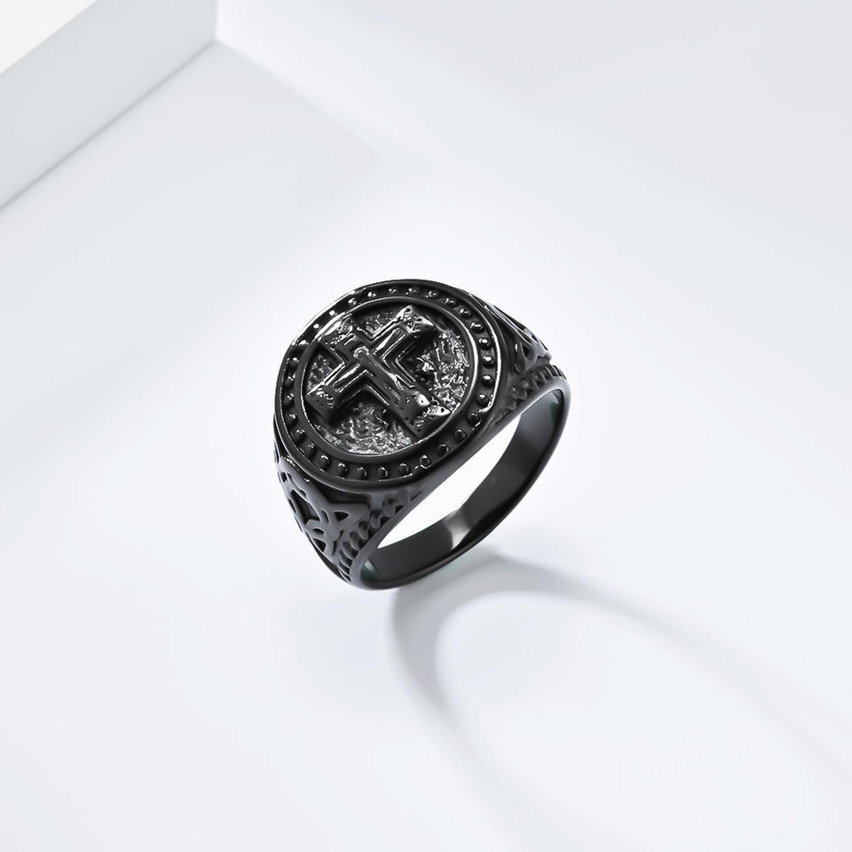 แหวนไทเทเนียมสตีลรูปกากบาทสำหรับผู้ชาย สีทอง ดำ เงิน สวมใส่ได้ทุกวัน เครื่องประดับฮิปฮอป สไตล์เรโทรพังก์