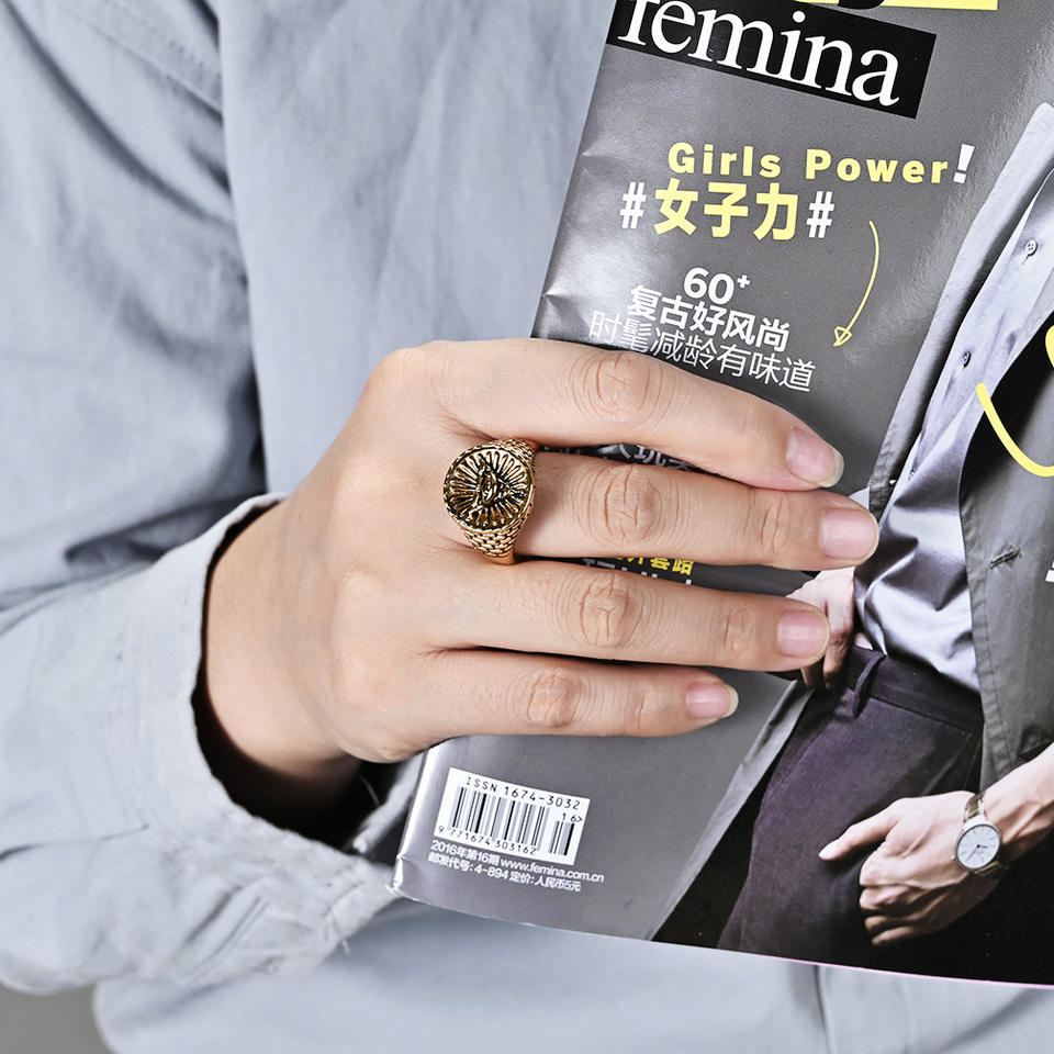 K-R852แหวนพีระมิดเหล็กไทเทเนียมสำหรับผู้ชายพร้อมสัญลักษณ์แทนตา