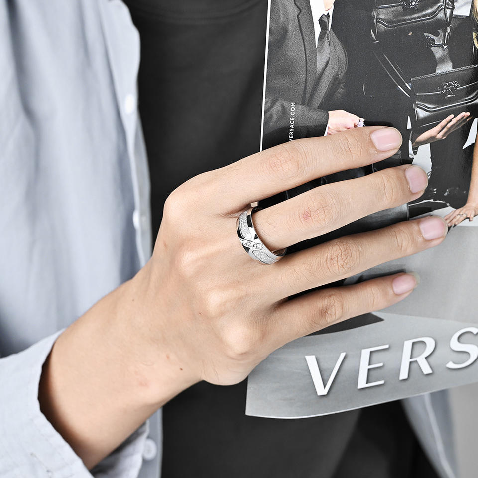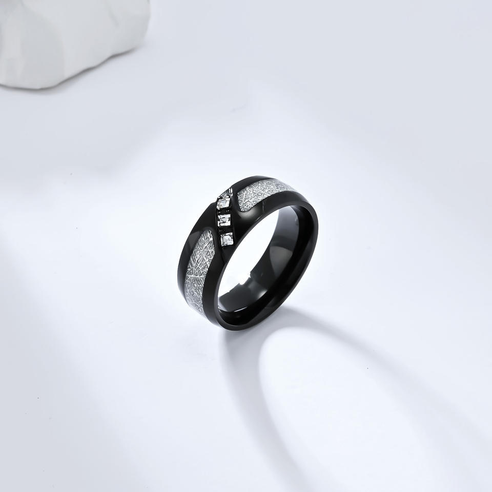 แหวนเหล็กไทเทเนียมสำหรับผู้ชาย ดีไซน์ทรงเรขาคณิต ประดับเพชร ช่องฝังเพชร สีทอง สีดำ ของขวัญ เครื่องประดับ K R777