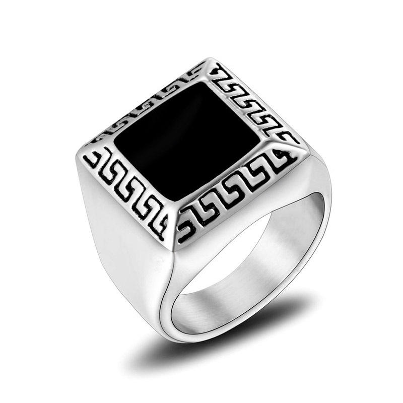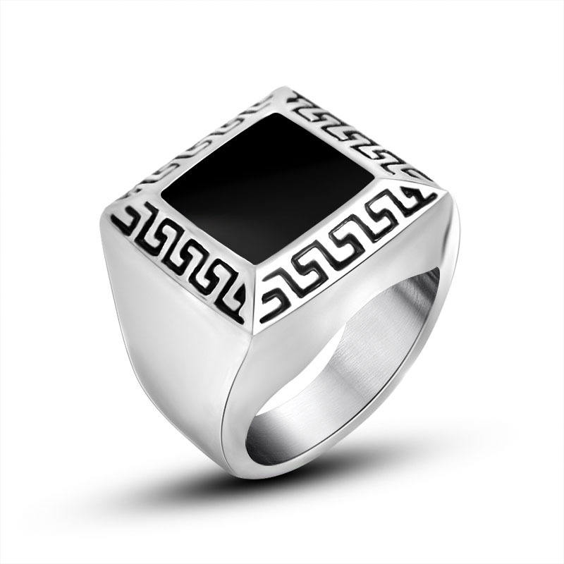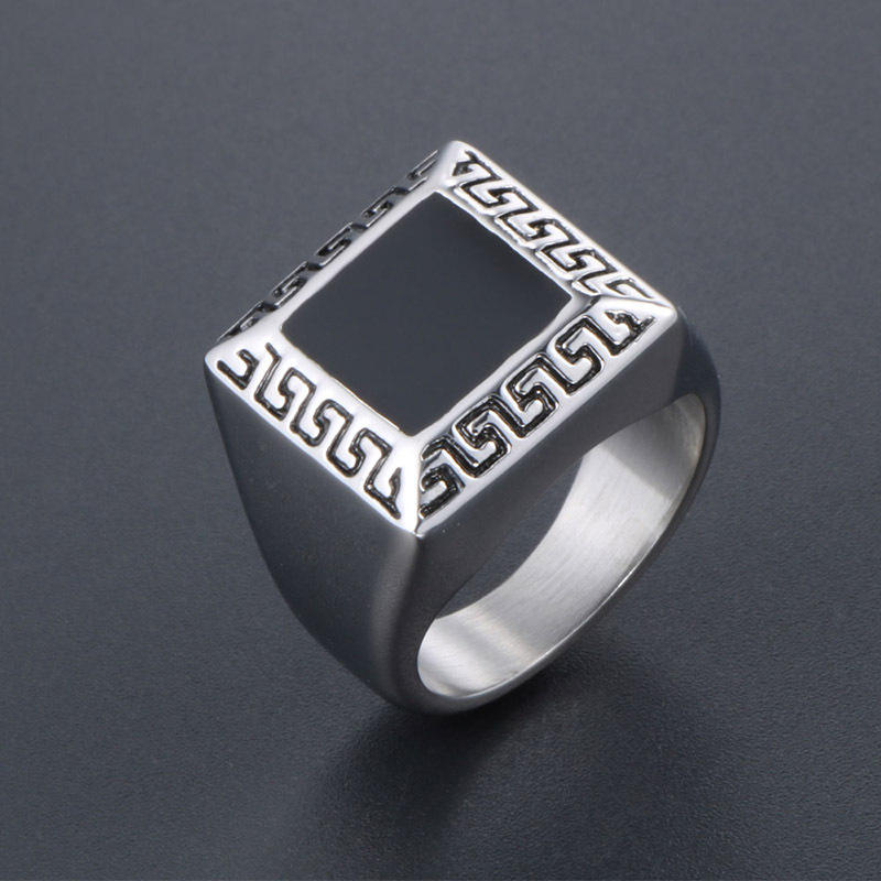 แหวนเหล็กไทเทเนียมสำหรับผู้ชายเครื่องประดับของขวัญดีไซน์ย้อนยุครูปทรงเรขาคณิตสีดำขนาด7 8 9 10 11 SA906