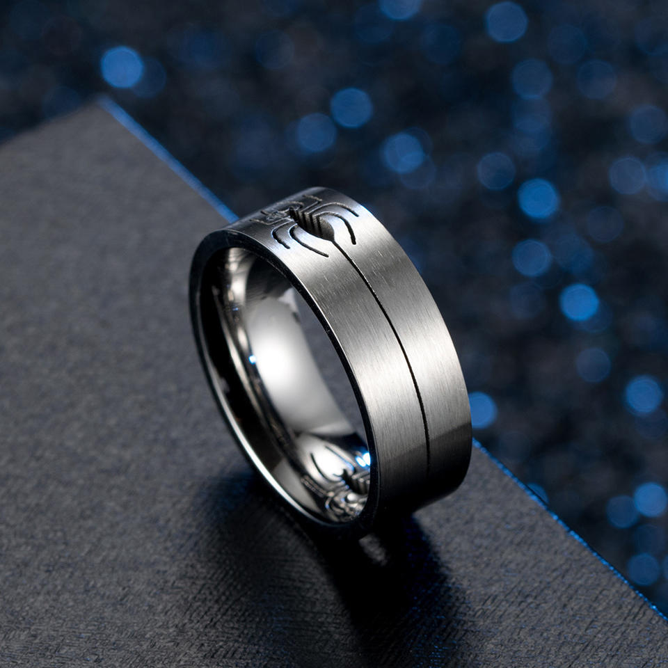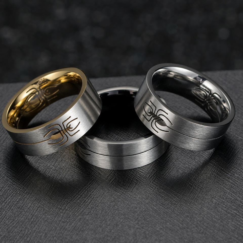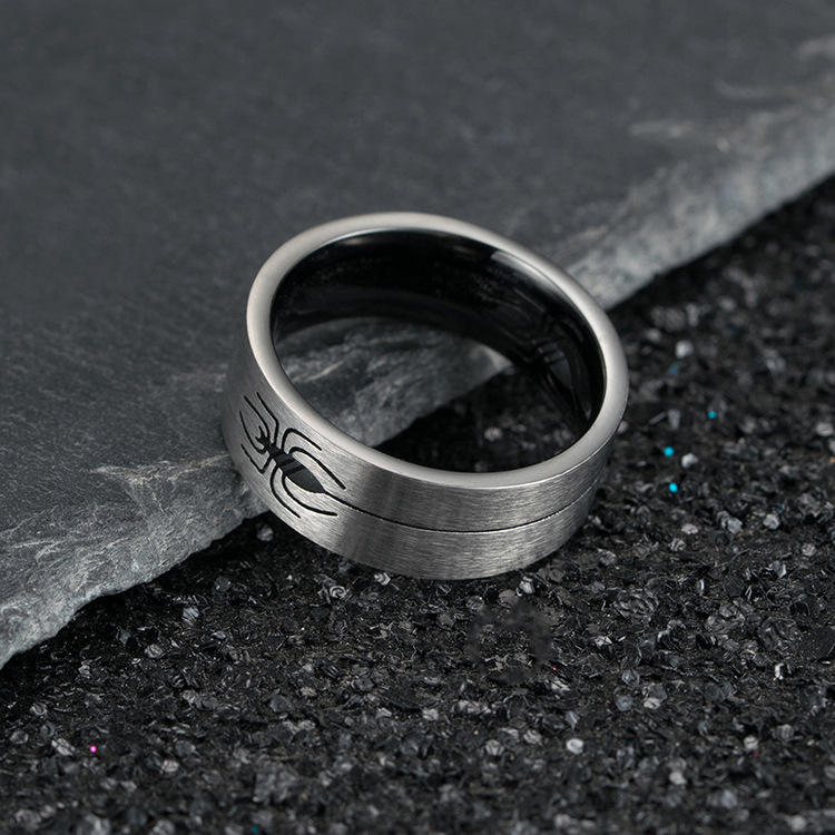 แหวนไทเทเนียมสตีลสำหรับผู้ชาย ดีไซน์แมงมุม ลายแมลงโปร่ง สีดำทอง ของขวัญ เครื่องประดับแฟชั่น อุปกรณ์เสริมสุดเทรนดี้