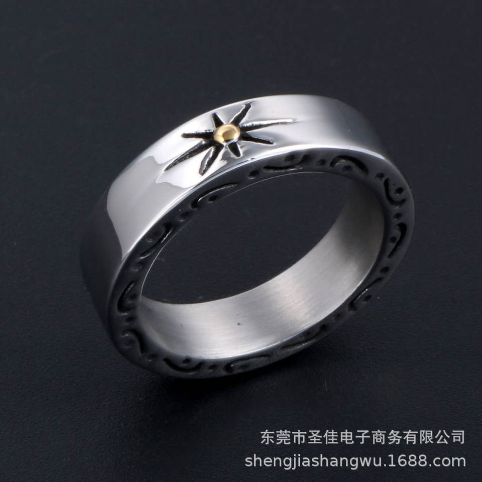 แหวนเหล็กไทเทเนียมสำหรับผู้ชาย ลายดาว ดีไซน์ดวงอาทิตย์ SA932 เครื่องประดับสำหรับสวมใส่ทุกวัน