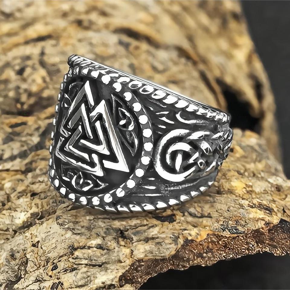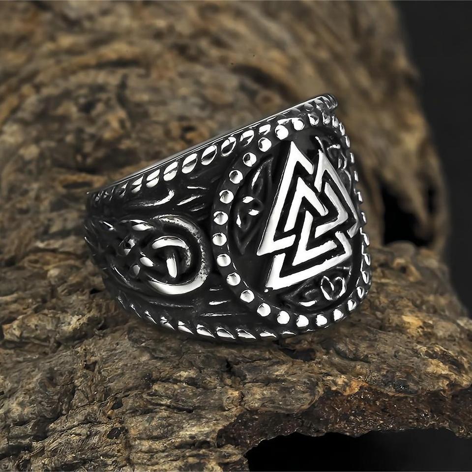 แหวนเหล็กไทเทเนียมผู้ชาย โลโก้วงไวกิ้งรูปสามเหลี่ยม สไตล์ฮิปฮอป เครื่องประดับแฟชั่น ของขวัญ