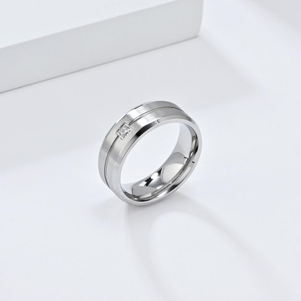 แหวนไทเทเนียมสตีลสำหรับผู้ชาย ประดับเพชรซิคอนเม็ดเดียว สำหรับงานแต่งงาน สีดำ ทอง เงิน แบบฝังขอบ ของตกแต่งแฟชั่น