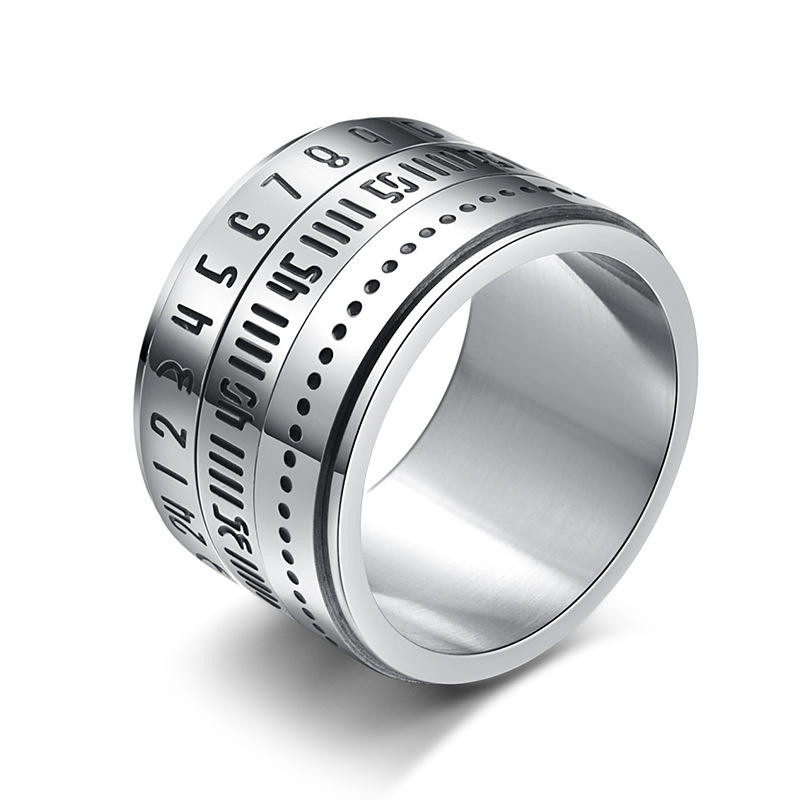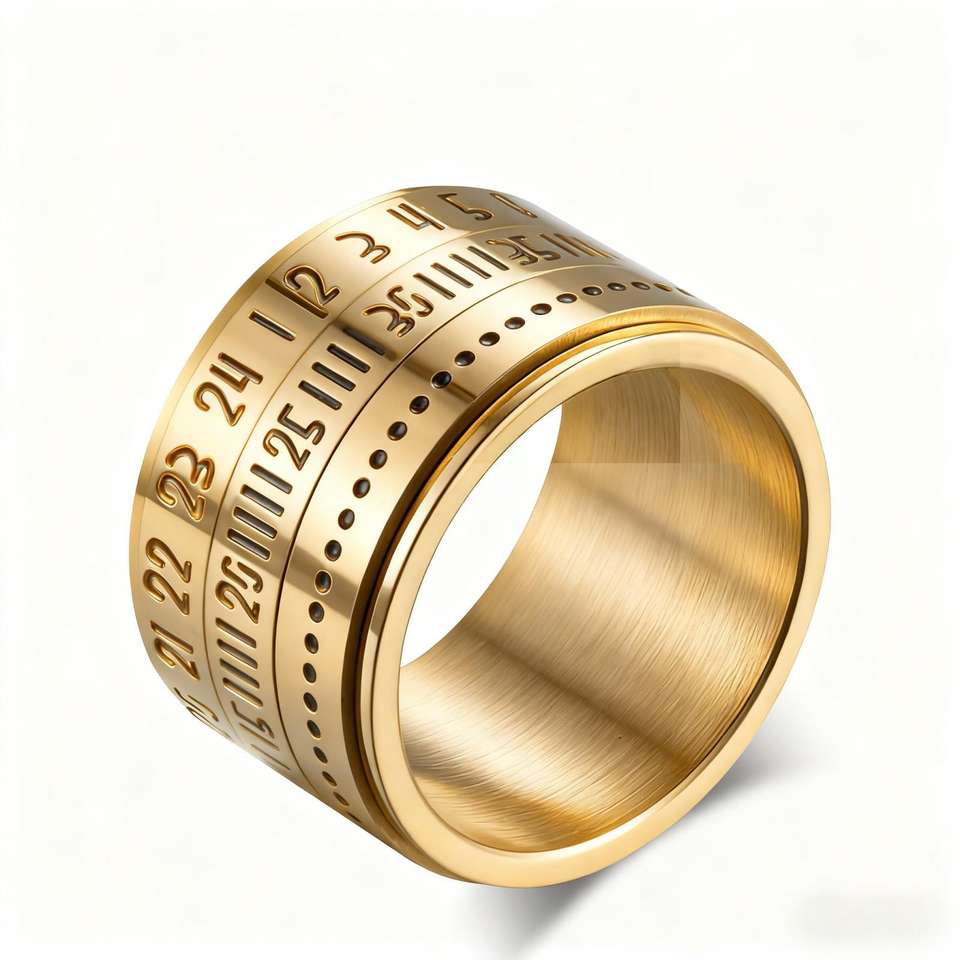 แหวนไทเทเนียมสตีลสำหรับผู้ชาย ดีไซน์ตัวเลขบอกเวลา ขนาดใหญ่ สไตล์ฮิปฮอป สำหรับนิ้วชี้ ของขวัญเครื่องประดับ สีทอง