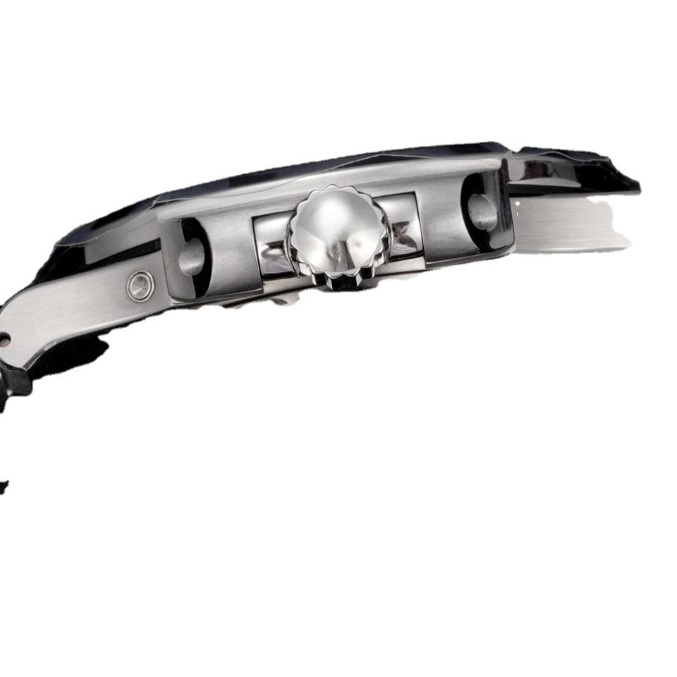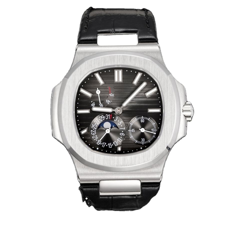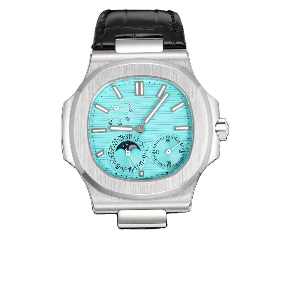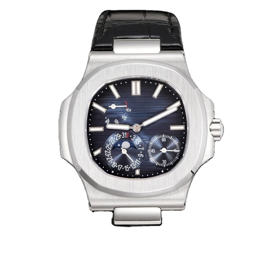 นาฬิกาข้อมือผู้ชายทรง Tonneau ระบบออโตเมติก สายหนังจระเข้แท้ หน้าปัดสีฟ้าครามแนวตั้ง พร้อมฟังก์ชั่น Moonphase และ Chronograph