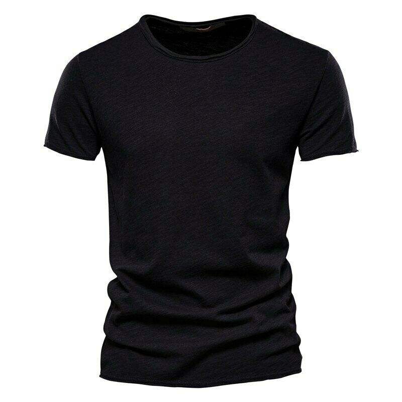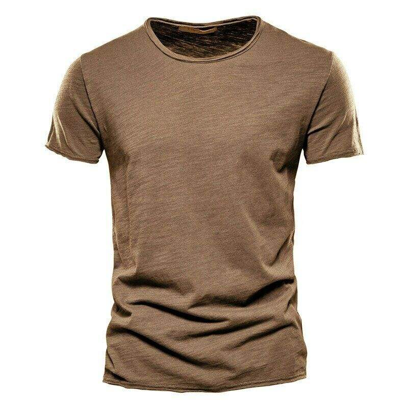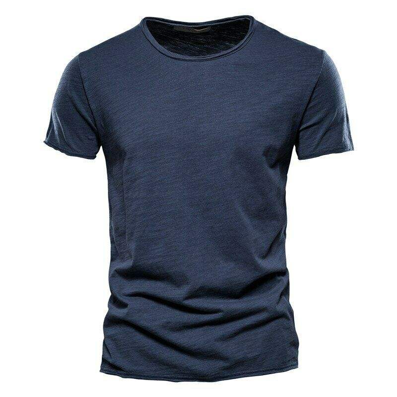 เสื้อยืดคอกลมทรงหลวมแขนสั้นสำหรับผู้ชาย ผ้าวอร์สเตด 100% คอตตอน ป้องกันขนร่วง