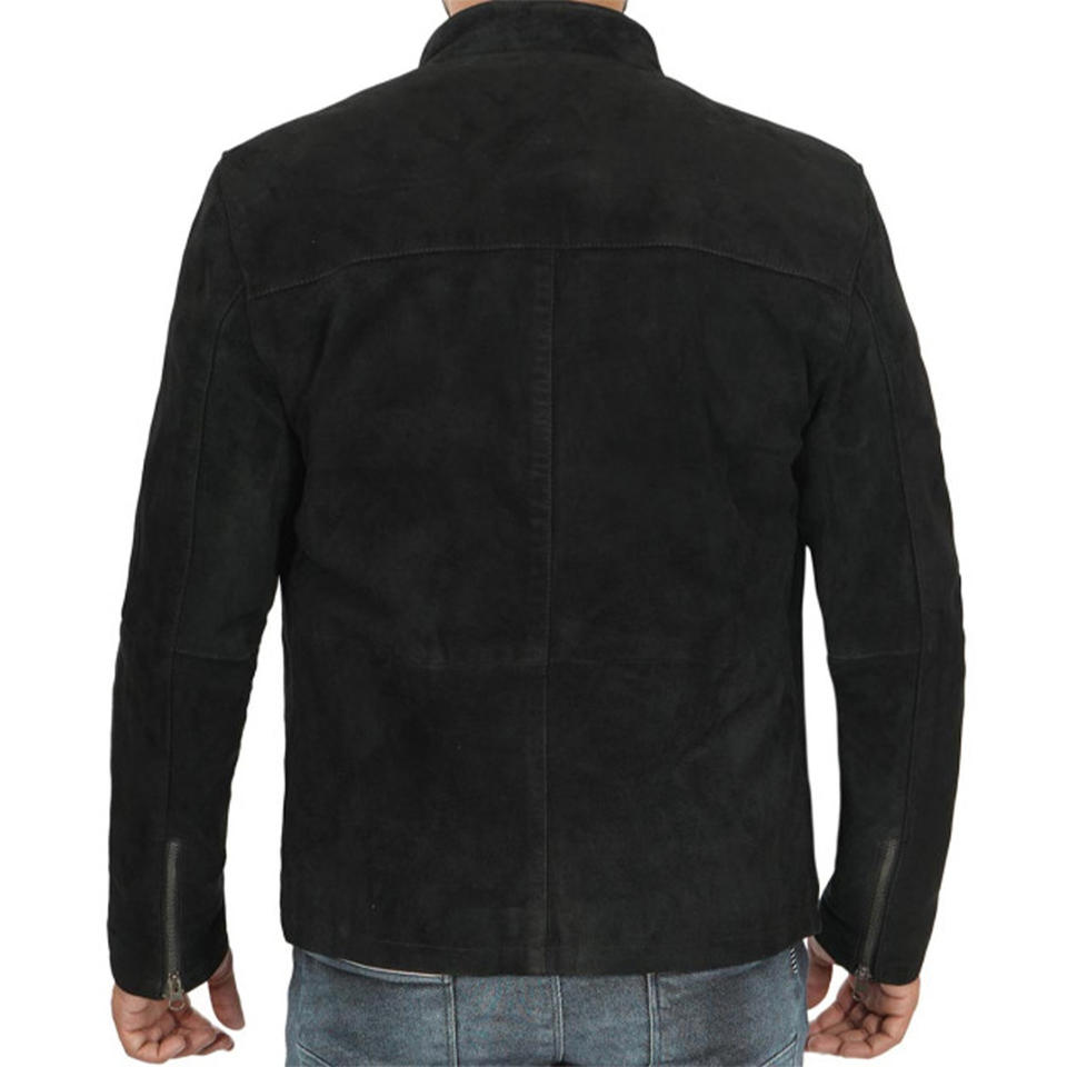 แจ็กเก็ตหนังนิ่มสำหรับผู้ชาย, แจ็กเก็ตแฟชั่นหนังกลับสีดำบุนุ่มระดับพรีเมียม