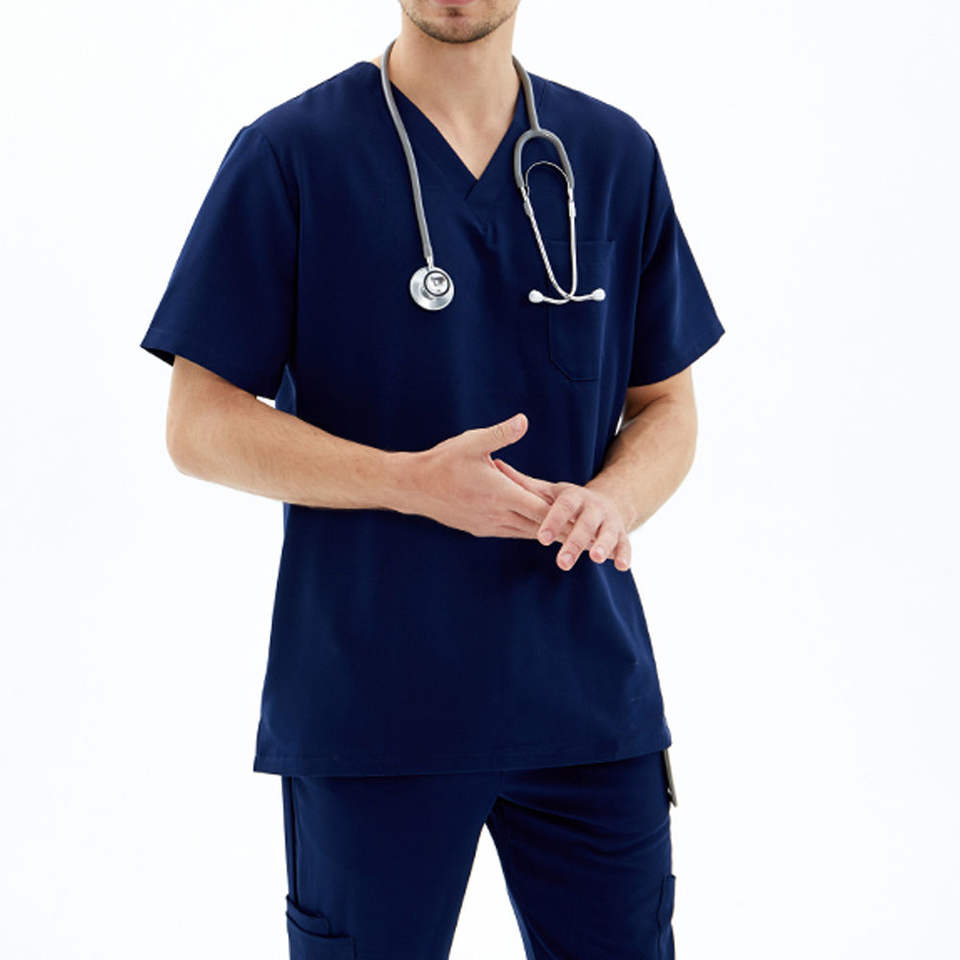 ชุดเครื่องแบบขัดโรงพยาบาลสำหรับผู้ชายชุดผ้าทอสีล้วนสำหรับเครื่องแบบโรงพยาบาล