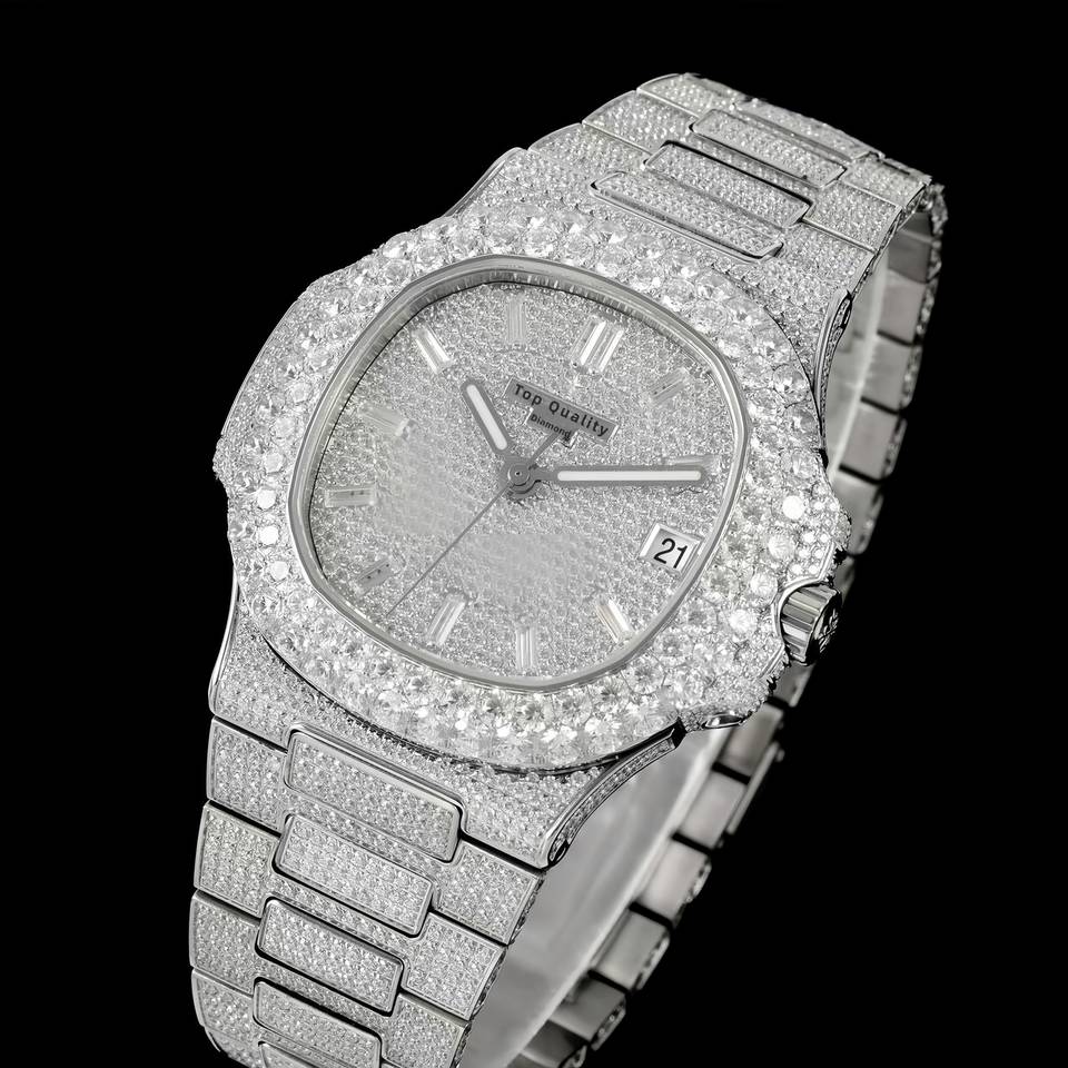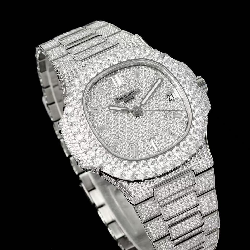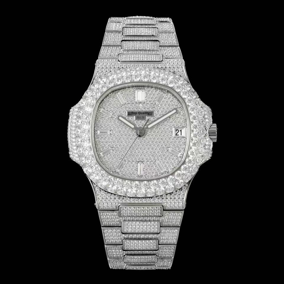 นาฬิกาข้อมือผู้ชายระดับท็อป VVS มอยส์ซาไนต์ หรูหรา แฟชั่น ธุรกิจ ขนาด 40 มม. สายสแตนเลส กันน้ำ ประดับเพชรที่เข็มนาฬิกา