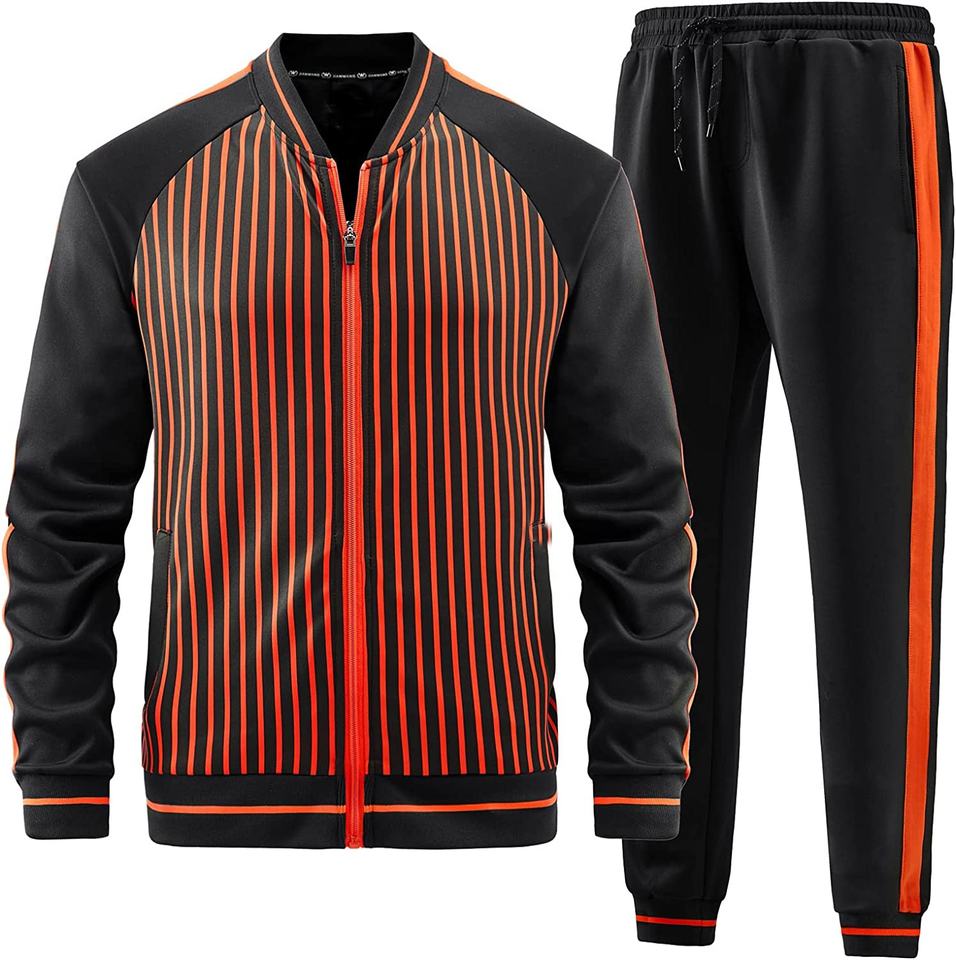 ชุดวอร์มแขนยาวคอตั้ง2ชิ้นสำหรับผู้ชาย,เสื้อแจ็คเก็ตและกางเกงวอร์มมีกระเป๋าข้างสองข้าง