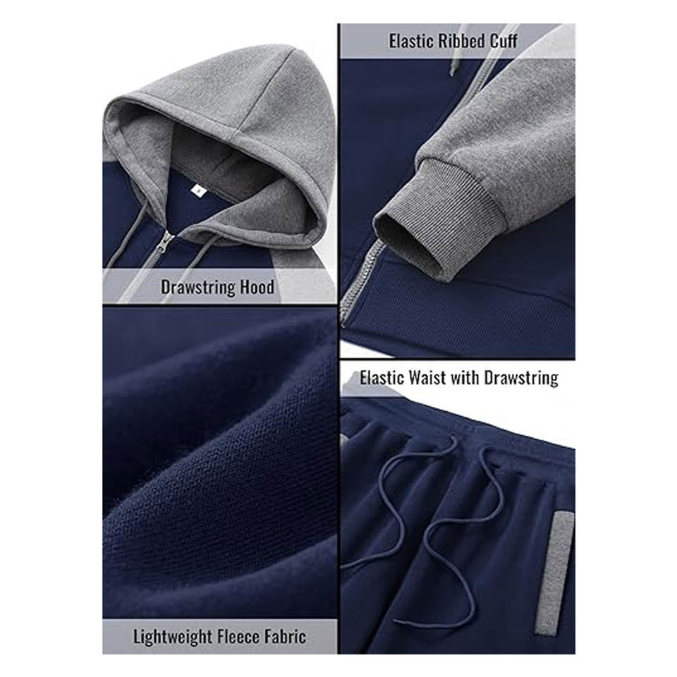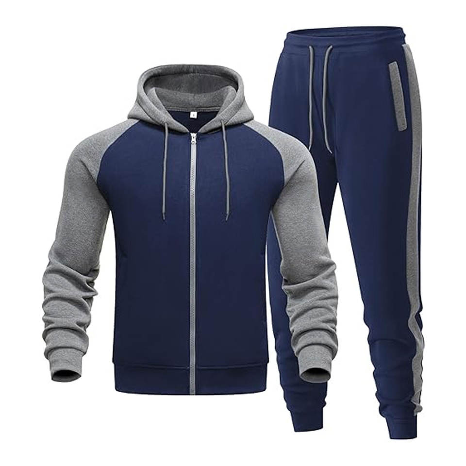 ชุดวอร์มผู้ชายแบบ 2 ชิ้น เสื้อฮู้ดมีซิป ชุดออกกำลังกาย ชุดลำลอง มีกระเป๋า เสื้อผ้าสตรีทแวร์ใส่สบาย