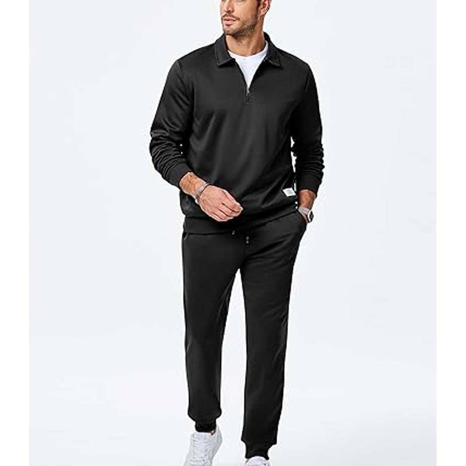 ชุดวอร์ม2ชิ้นสำหรับผู้ชายชุด1/4โอเวอร์ไซส์มีฮู้ดและกางเกงวอร์มแนวยุทธวิธีชุดเล่นกีฬาทรงแบ็กกี้ทันสมัย