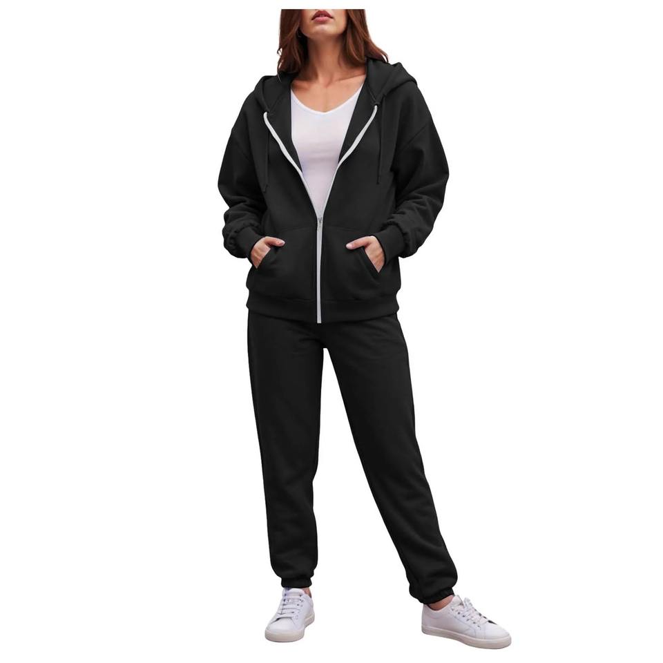 ชุดวอร์มสำหรับผู้ชายชุดเสื้อผ้าแบบสวมมีฮู้ดและกางเกงมีฮู้ดสำหรับผู้หญิงสีพื้น + กางเกง