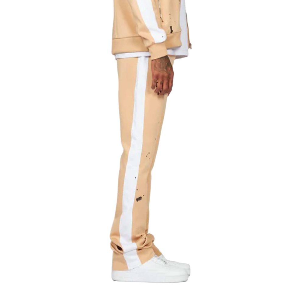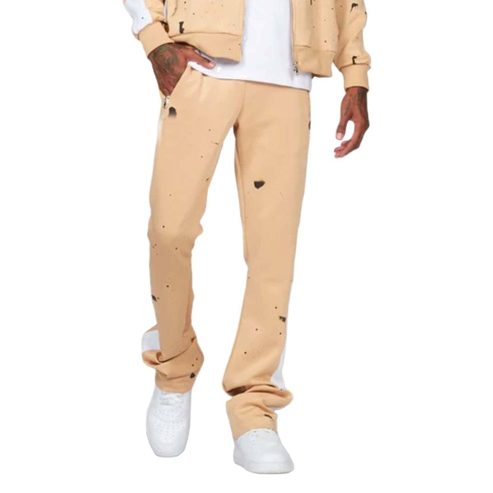 ชุดวอร์มสำหรับผู้ชายเสื้อแจ็กเก็ตและกางเกงแนวสตรีทแบบมีซิปเครื่องแต่งกายสองชิ้นแฟชั่นลำลองพิมพ์ลายทางด้านข้าง