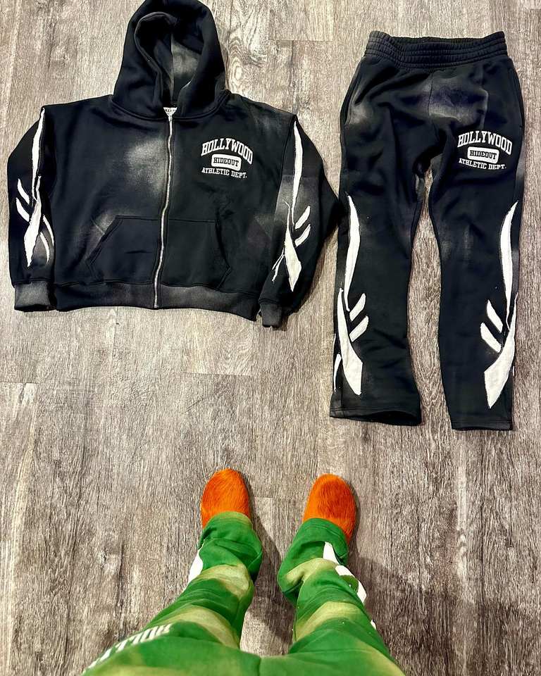 ชุดวอร์มของผู้ชายชุดวอร์มกางเกงสองชิ้นแบบซ้อนพิมพ์ลายพัฟแบบกำหนดเองชุดเสื้อมีฮู้ดกางเกงแบบซักได้ชุดเสื้อผ้า2ชิ้น