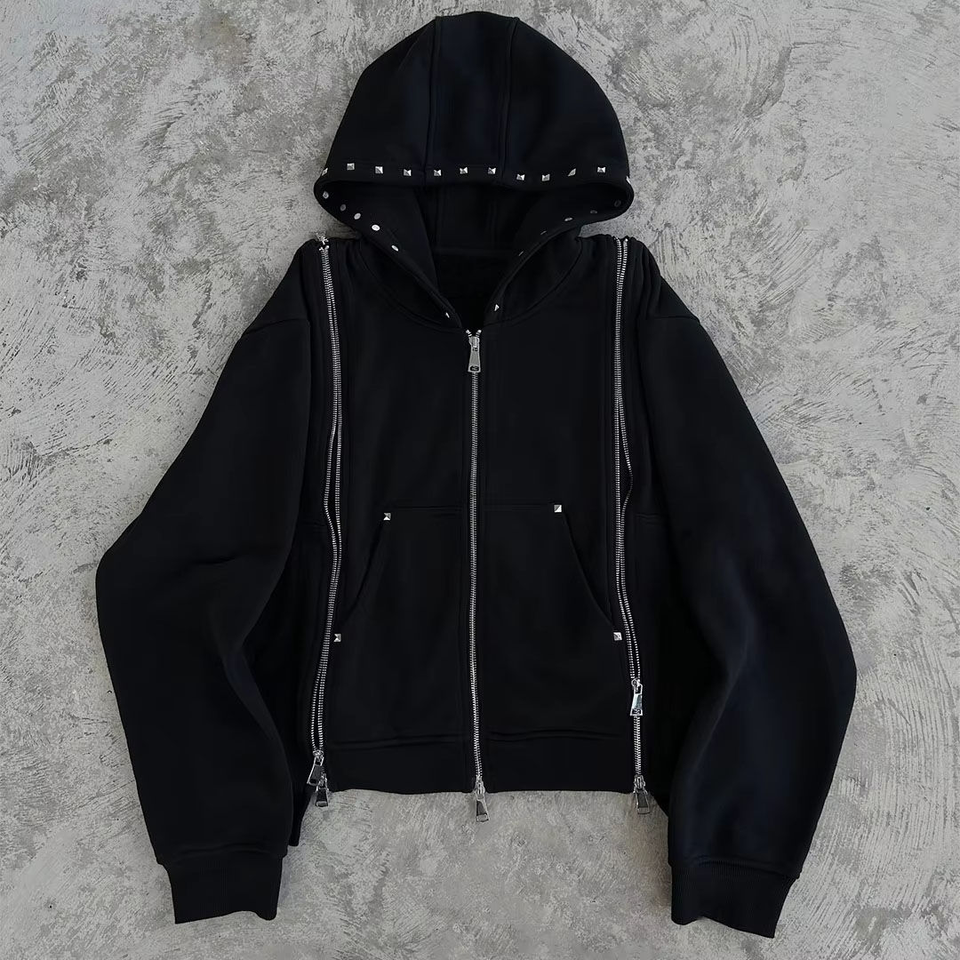 ชุดวอร์มมีฮู้ดสำหรับผู้ชายชุดวิ่งออกกำลังกายผ้าฝ้าย100% แขนยาวมีซิปเต็มรูปแบบ
