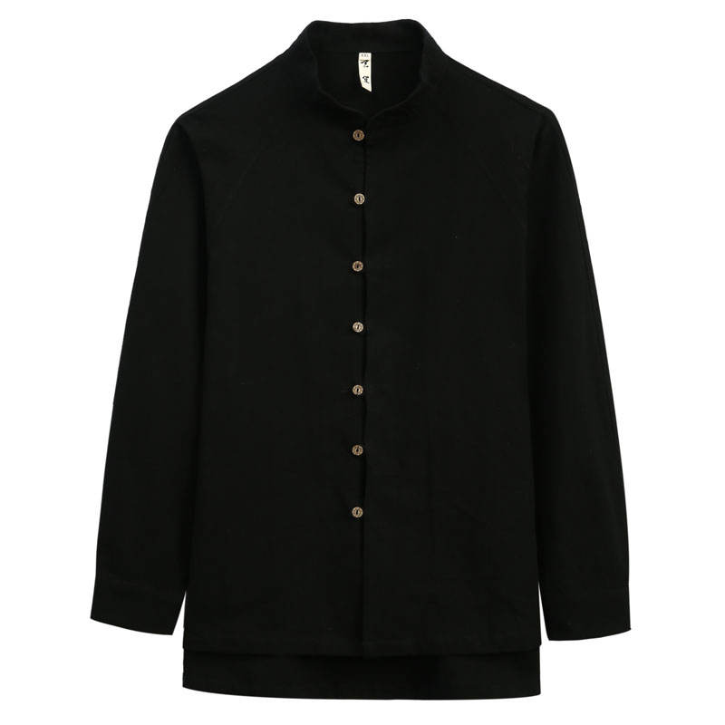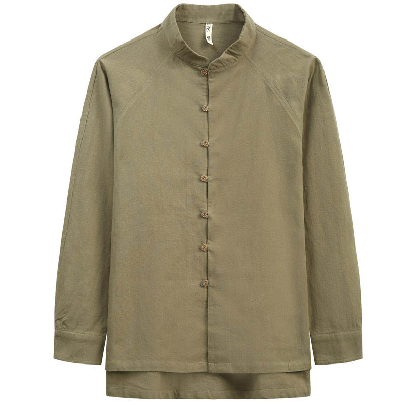 เสื้อสูทถังจีนแบบดั้งเดิมของผู้ชายเสื้อผ้าป่านแขนยาวคอปกตั้งทรงหลวมไซส์ใหญ่ฤดูใบไม้ร่วง