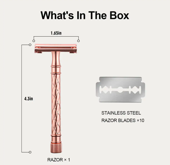 มีดโกนนิรภัยสำหรับโกนหนวดโครเมี่ยมขอบคู่คลาสสิกแบบดั้งเดิมของผู้ชาย + ใบมีดนิรภัยด้านบนมีดโกนทองเหลือง