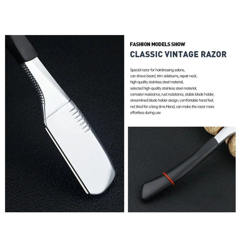 มีดโกนตรงพับได้แบบคลาสสิกสำหรับผู้ชายปลอดภัยแบบดั้งเดิมพร้อมที่จับซิลิโคนกันลื่นออกแบบโลโก้ได้ตามต้องการสำหรับร้านตัดผม