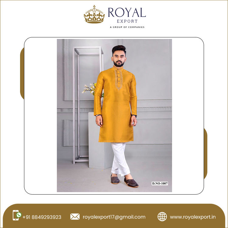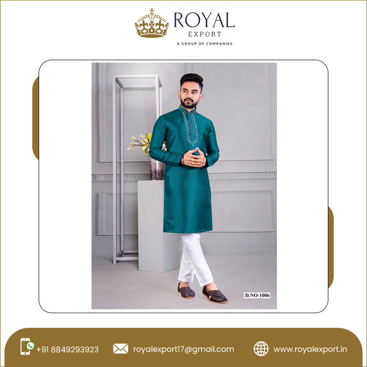 ชุดเสื้อผ้าพื้นเมืองของผู้ชาย,คอใส่ทำงานทำจากผ้าไหม Corian และ Resham คอลเลกชันชุดนอน Kurta By Royal Export