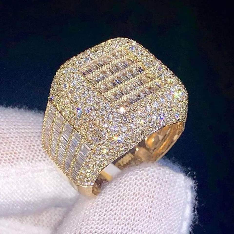 แหวนตัวอักษรสไตล์ฮิปฮอปน้ำแข็งสำหรับผู้หญิงเครื่องประดับเครื่องแต่งกายเงินสเตอร์ลิงทรงกลมตัดวงรีทรงรี
