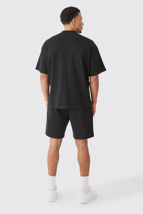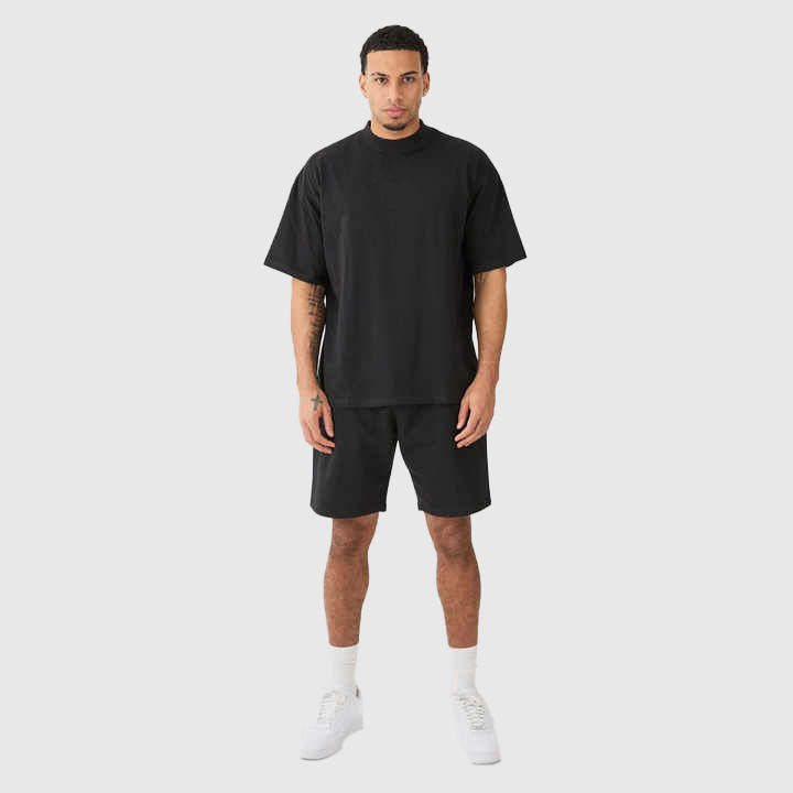 เสื้อและกางเกงขาสั้นสำหรับผู้ชายชุด2ชิ้นเสื้อคอกลมทรงหลวมแขนสั้นปักโลโก้ได้ตามต้องการ