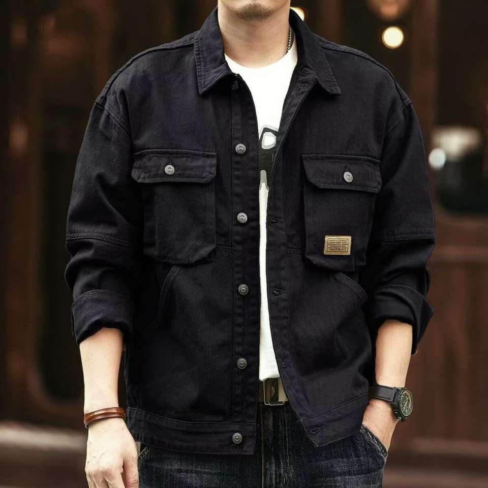 แจ็คเก็ตยีนส์ผู้ชายแบรนด์ดัง ทรงเข้ารูป แขนยาว สไตล์วินเทจลำลอง ปกเสื้อแบบลาペル ผ่านกระบวนการฟอกสี ป้องกันลม เหมาะสำหรับฤดูใบไม้ผลิ