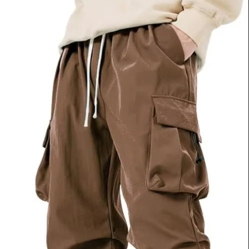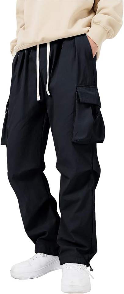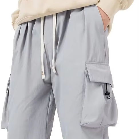 กางเกงคาร์โก้ร่มชูชีพผ้าสแปนเด็กซ์ลำลองสำหรับผู้ชายกางเกงทรงหลวมน้ำหนักเบามีเชือกรูดแนวฮิปฮอปเอวกลางมีกระเป๋า